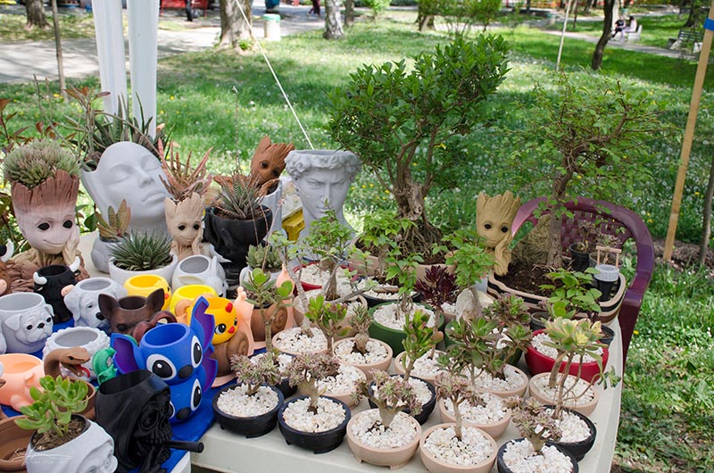 – Немам телевизију, радио, ништа што може да ми одвуче пажњу. Имам малу ботаничку башту и уживам у раду са биљкама. Максимално сам им посвећена, што је њима и најпотребније – каже Далматинка Станковић из Ниша, у чијој понуди се посебно издваја бонсаи дрвеће, као и једна биљка стара 27 годин, која са ценом од 25 хиљада динара спада међу скупље на сајму.