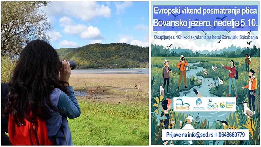 Сокобањско еколошко друштво позвало је све заинтересоване да се придруже Европском викенду посматрања птица, који ће бити одржан у недељу, 5. октобра, на Бованском језеру. Ова манифестација у Сокобањи се организује десети пут заредом.